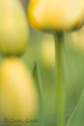 Last week’s photograph was of vivid red tulips. In the bright sunlight of spring, colors often become bold, striking, and rich in contrast. But there’s also a flip side to the season, and that’s the softness that’s found in the spring palette. When the sky is overcast, or in the early morning or late evening there’s a calming and quiet hush that sometimes settles over the gardens. It’s almost as if nature is resting after all its exuberance in bursting forth after winter. In trying to photograph this softness and hush I’ve chosen to take this image with a slight blur, making this more about the shapes, tones and feelings rather than the direct representation of the tulips.