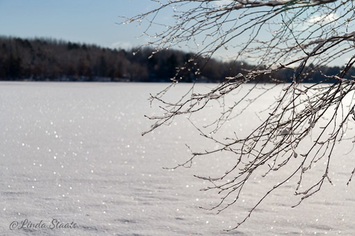 Sometimes the beauty of winter takes my breath away – the clearest of blue skies, ice and frost lining the tree limbs, the bright sunlight beaming down, and the fresh snow reflecting that sunlight in small diamonds all across the frozen lake in front of me.