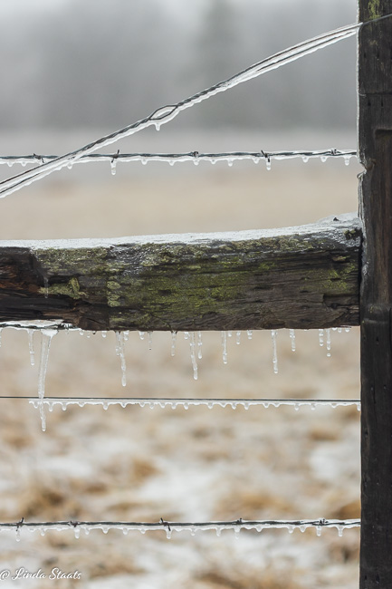 The outside world has not transitioned to spring. We’ve had snow, sleet, rain, and a thick ice that covered everything — the trees, the walkways, the electrical lines, the fences, and the barbed wire. Suspended in the cold air, the ice drips froze in place. It was eerie to see, and even stranger to watch as the temperatures rose. The wind picked up and the ice began falling from the electrical lines and trees. As I parked my car, it was like a hail storm with bits of ice raining down from the overhead tree branches.
