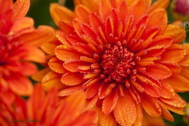 Just as the calendar shows us passing the autumnal equinox last week, it seems that nature is truly slipping into fall here in Minnesota. Our nights are getting cooler and the sun is lacking the heat it had even a few weeks ago. Yesterday morning we got up early to drive south to Wabasha, a town that sits right on the Mississippi River in the heart of the bluff country. The air was heavy with moisture and we drove through thick fog in places. As we were going to be helping some friends harvest grapes in their vineyard, we had been hoping for a sunny and warm day. When we arrived at their home overlooking the Mississippi River Valley we were still in the fog, but I was delighted to be able to divert my attention from the grapes to photographing their gardens. These fall-colored mums were in full bloom, and upon closer examination I saw that they were laced with the dew of this damp morning. The fog and low clouds eventually gave way to sunshine and a warm-enough fall day as we worked throughout the morning and afternoon picking grapes. The time passed quickly with conversation amongst friends, and our fingers and hands became stained and coated with the color and smell of the ripe grapes. By the time we drove home after a celebratory dinner preceded by a toast to the wine harvest, the clouds had passed and the sky was filled with a full canopy of stars overhead.