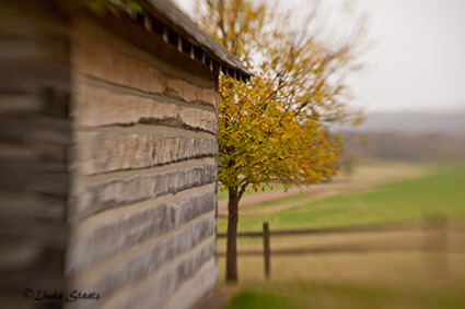 We headed out last weekend for one final camping trip before the snow flies. Our original plans had us going to the southwest corner of Minnesota, but a prediction of one to two inches of rain changed our minds. Looking for “drier pastures” we drove to North Dakota. Nestled in the southeast corner of the state is the Sheyenne River Valley that seemed to have the potential for unlimited exploring. One of the national scenic byways runs through this river valley, and we found ourselves meandering down gravel roads taking in the scenery. The peak fall color was already past although there were spots of gold mixed in with the rich maroon and brown of the oaks. The valley is wonderfully scenic and has beautiful rolling hills, as well as much history. We camped at Fort Ransom State Park near the spot where the original Fort Ransom was established in 1867. After the fort was dismantled in the mid 1870’s the valley was opened for homesteading. Many of the early settlers in this area were Norwegian farmers, and their heritage and influence is evident. Within the state park is the original homestead of Andrew Sunne who settled on the land in 1884. His home and original barn are still on the site. This photograph is of a cabin that is on the Sunne site, looking out over part of the river valley. What wonderful sights the Sunnes must have seen out their cabin windows, seeing the river and hillsides and following the progression of all four seasons.