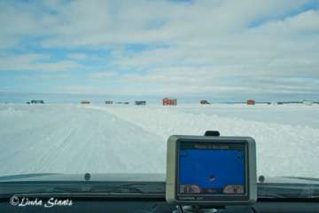 The past week was all about winter here in the Twin Cities. It was the St. Paul Winter Carnival with its ice and snow sculptures along with all the outdoor activities associated with the event. I was fortunate to have a dear friend from the Seattle area here visiting (yes, people really do come to Minnesota for vacations!). I wanted to show her something that’s unique to our area in the winter time besides all the piles of snow that are gracing our urban landscape. So we headed north to the second largest lake in the state, Mille Lacs. We got our road pass for the day and drove four plus miles out into the lake on the ice road. How bizarre to look at my GPS and see the car symbol surrounded by blue water! Just a reminder that there really is a lake underneath this layer of ice. The lake is filled with fish houses now, as far as the eye can see. Some are sitting out all by themselves, and others are close together forming their own little villages. Although we didn’t see any large piles of fish sitting nearby, I’m sure the fishing must have been good on this blue-sky day.