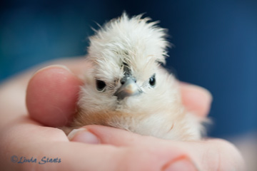 Although we were in sub-zero temperatures earlier this past week, we are all looking forward to spring on the calendar. And as if in answer to our pleas, the thermometer has been getting into the 30’s and 40’s the past few days. Sure signs of spring in Minnesota are puddles of water from all the melting snow, as well as people outside in their shorts and short sleeves. Granted, to most people 40 degrees doesn’t warrant shorts, but for us the temps are 50 degrees warmer than what it has been — a grand reason to celebrate. To me, another sure sign of spring are chicks, and in this case, baby chicks less than a day old! Through the generosity of some great new friends, I was fortunate to have the opportunity to photograph a group of silkie white bantam chicks that had hatched within the past day. Silkie chickens are unusual in that they have dark blue flesh and bones, and they have five toes on each foot whereas most chickens have four. What an amazing group of little birds! They would be up hopping and walking around chirping, and then be fast asleep all huddled together under a heat lamp. The little chick being held in this photo has a look of determination in his eye. In his short life he’s already pecked his way out of his egg, has gotten his feet working, has dried out all his feathers (and had them fluffed up thanks to the humans watching over him), and is ready to get on with his life. In no time he’ll grow into a full white pompadour of hair on his head.