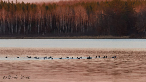 And there have been an unusually large number of hooded mergansers swimming in the lake. I have counted up to 50 in one area, taking their turns at diving down for small fish and other food. This evening as the sun was setting, the pink color of the sky reflected onto the lake surface as the last gasp of sunlight hit the distant shore. Soon our lakes will freeze over and all the waterfowl will have left the northern areas and gone south in search of open water.