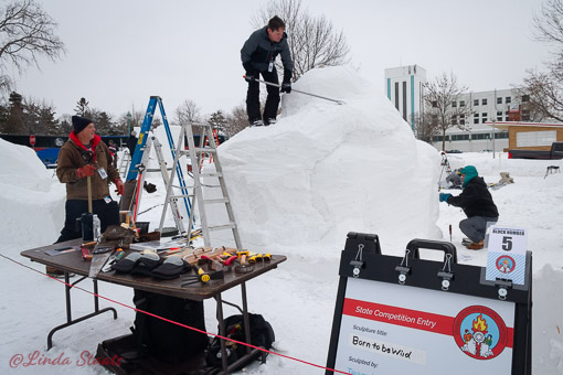 We are in the midst of the coolest celebration on earth – the Saint Paul Winter Carnival. One of my favorite events to attend is the snow sculptures. Teams work for hours taking a huge block of compacted snow and cutting and carving and sculpting it into a work of art. In years past I’ve only seen the sculptures after they were completed, but this year I decided to take in the actual carving. I found some teams with elaborate hand drawn sketches and plans for their sculpture, and other teams that had small dolls or toys that they were using for their design. The tools, measurements, and time that go into these works of art is amazing. The temperatures have been warmer than usual which created some challenges for the sculpting but the end results are always amazing.
