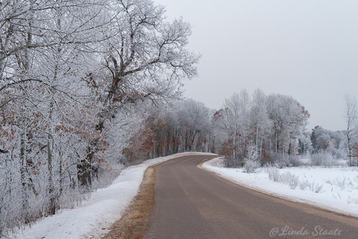 I awoke last weekend to an amazing winter wonderland. The air was cold and still and everything was coated with white hoarfrost. The tree branches were outlined in frost, each individual leaf was outlined, and everything was shining white. I wandered the nearby roads and saw pine trees and shrubs, oak trees and weather vanes, all outlined in white. Even though our snow pack had gotten old and not-so-white, the hoarfrost brightened the entire landscape and gave it a magical look.