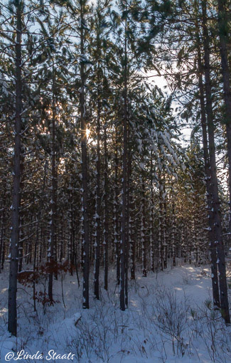 We’ve quickly moved from late fall to snowy winter. The last two weeks have brought snowfall after snowfall, some were quite significant! The forests and woods take on a whole new feeling with winter. Stand still amongst the trees and there’s a quiet that surrounds you. After a minute or so there’s a rustle in the remaining oak leaves that are now brittle with winter’s cold. Eventually the birds ignore your presence and go about their singing and flitting from branch to branch. The snow has marked the direction of the storm on the sides of the trees. And as the sun clears the forest’s edge it lightens the entire area and sparkles off the whiteness all around.