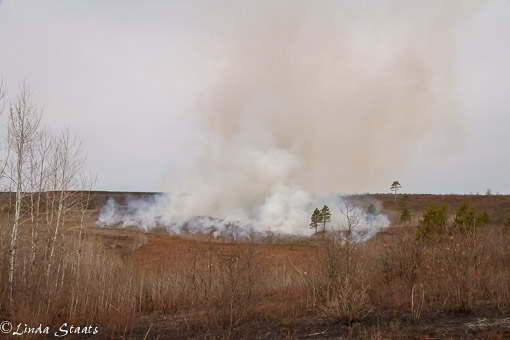 We were exploring at the Namekagon Barrens Wildlife Area this past weekend. Located in Burnett County in northwestern Wisconsin, this is a globally rare landscape of pine and oak with a very sandy soil. It’s quite startling to see the Barrens after driving miles through forested land; all of a sudden the sky opens up and the vista is wide with rolling hills and a prairie-like view. The ground near the road was black where there had been a prescribed burn the day before, and the air had a pronounced smell of smoke. After about 20 minutes, we saw smoke to the east and found they were doing some spot fires to finish what had been started the day before. I’m excited to return to the area in the next week or so — the grass will be turning green with our recent rains, and soon the wildflowers will sprout and bloom.