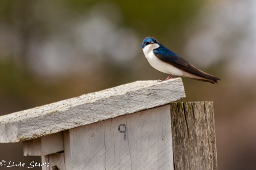 As we were exploring the Namekagon Wildlife Barrens in northwestern Wisconsin we saw many bluebird houses distributed throughout the area. Numerous agencies and individuals have worked hard to be sure the birds have access to good nesting areas. At one road junction we stopped and watched this tree swallow as it flitted in and out of the house, flying to the trees nearby, then coming back to the house. He was accompanied by a female which came and went many times too. What a delight to let time stand still and watch their activities and absorb this little bit of spring!