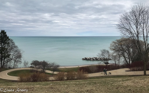 Last weekend we made a quick trip to Milwaukee. Although it is further south than the Twin Cities, the temperatures were still cool and there was a brisk wind blowing. We spent a few hours at the Milwaukee Art Museum and then drove north along the shoreline of Lake Michigan. It was a wonderful drive close by the lake, then through some neighborhoods of large historic mansions and many public parks. The lake was a beautiful almost-turquoise color that contrasted nicely with the clouds. As cool as it was, people were out enjoying the day with its promise of spring.