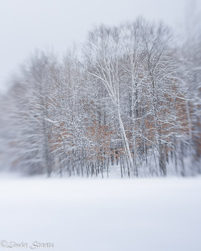 The snow had been falling for hours. To counter my cabin fever, I strapped on my snowshoes and headed into the woods. The air was filled with quiet except for the occasional wind that would stir and force the snow to fall from the branches. I hadn’t expected the snow to be so very deep in the woods, but it was tough and slow trudging through knee-deep snow. Needless to say it took me much longer than I had expected. But I was rewarded with beautiful snowy vistas, exercise in the fresh outdoors, and I was even serenaded by trumpeter swans in the distance.