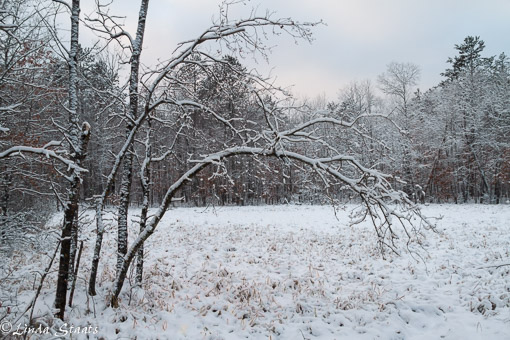 Take a rainstorm that makes everything wet, drop the temperature so the rain changes to sleet, the sleet changes to ice, and then drop the temperature more and it snows. And the snow clings to everything – the branches, the oak leaves, the pine trees, the sedges. Our world became a winter wonderland with everything coated with white snow. It was stunning, and it was so easy to appreciate the beauty of Mother Nature in winter.