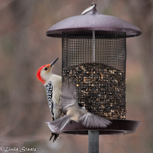 I spent an hour watching the rivalry play out at our bird feeder the other day. There were black capped chickadees and red breasted nuthatches coming and going freely, getting their fill of seed prior to the cold snap moving in. Suddenly they would disperse, and one of the red bellied woodpeckers would take over the feeder. Their size and aggressiveness would send the smaller birds away. But don’t rule them out…the chickadees and nuthatches would fly in quickly, grab their seed, and leave just as quickly. Eventually the woodpeckers would move to the nearby trees, and the smaller birds would reign over the seeds. It was fascinating to watch, and it seemed that everyone had their time at the feeder.