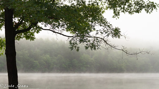 Summer seems to be associated with activities — the longer days give us more time to play and enjoy the sun, warmth, and water. But sometimes we’re reminded that quiet and peacefulness are just as important during the summer. We’d had heavy rains the previous day and the temperatures were moderate. In the morning we woke to a thick fog that initially covered the entire lake and blocked the trees on the opposite shore. As the sun feebly tried to break through the fog, the shoreline became more visible. There was no wind – only stillness. It was a quiet and tranquil time. The fog was in no hurry to burn off, and the morning was taking its own sweet time. It seemed to be a reminder to slow down and enjoy all the moods of summer as it will soon fade into autumn.