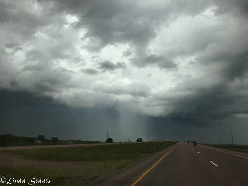 During both directions of our trip we got to watch the development of weather fronts. When the landscape stretches out before you, behind you, and around you it gives you a chance to see the blue (or hazy) skies change to white clouds to billowing thunderstorms to darkness and rain, and then back to clearing skies. I’ll gladly take a road trip any day over a plane flight that picks you up from one landscape and drops you into another without the benefit of all the miles and scenery in between.