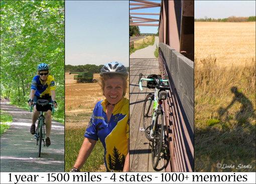 Last weekend I reached a goal I set for myself earlier this year – I completed 1,500 miles on my bike for the year. From back in mid-March when the temperatures were cool and our legs weren’t ready, we’ve biked and journeyed through Minnesota and even across the state of Kansas. We’ve seen prairies and wheat fields, lakes and flatlands, rain and wind, hills down and up. Sadly some of my final miles this year have been ridden alone as my riding partner hasn’t been able to be on the bike. But he was helping me along in all the important ways with his encouragement and support. So last Sunday with a SSE wind of 14 mph+, I headed northeast on the Gateway Trail, then meandered on county roads with that tailwind behind me. The final miles were north on the Sunrise Prairie Trail. My wingman met me in the town of Stacy where I watched my bike odometer turn to 5,000 miles (yea!) and the culmination of 1,500 riding miles for this year. My bicycle has brought me in contact with great people, amazing scenery, the best and worst of weather, a sense of accomplishment, and the most wonderful feeling of adventure as I cruise along on trails and roads. The kid in me enjoys the freedom of riding and the adult in me appreciates the bounty of sights, sounds, and memories. So this winter as the snow is piling up we’ll be planning our biking adventures and goals for next year.