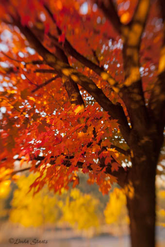 Our cool nights and warm days earlier this week provided the perfect recipe for bright autumn colors. With a blue sky and a sidelight provided by a rising sun, I knew this tree would be brilliant. The colors were intense and the leaves that were already on the ground provided a subtle crunch as I walked around the grove of trees to frame this image. What you don’t see is that I was right next to a busy street during morning rush hour, and I couldn’t help but wonder if the people passing by were aware of this brilliant display that Mother Nature was providing. I hope they paused for a brief moment to appreciate the colors, to be aware of the smells of fall, and to know that it is all fleeting as winter will soon be on the heels of autumn.