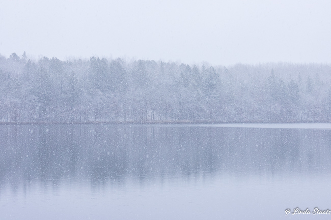 And within a short span the calendar changed, the wind direction shifted, and winter slid in. November came and the winds blew cold coming out of the Canadian prairies and brought the snow. It was beautiful to watch it float down. The flakes silently landed on the trees. Others melted as they hit the water surface. For this moment the world was calm. And quiet. And beautiful.