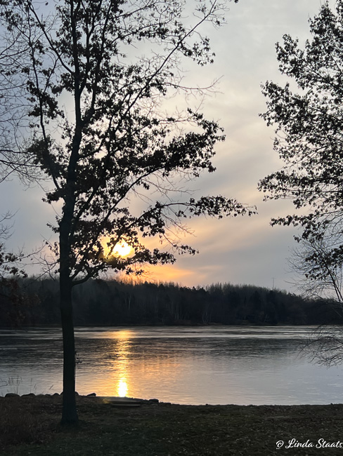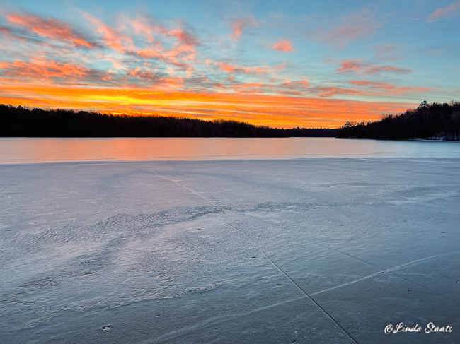Lake ice has not been dependable due to our warmer-than-usual temperatures. The warm daytime temps create pools of water on top of the ice, then it freezes up overnight as the temps go below 32 degrees. I watched this repeat day after day last week. The usual company of ice anglers seem to have abandoned their sport due to the uncertain ice conditions, and the whole area is very quiet.
