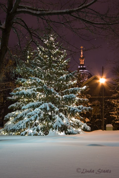 We awoke on Christmas eve to more snow. In what has become our snowiest December on record, another five or six inches of snow served to freshen the white coating. After taking care of last-minute shopping and dinner preparations we decided to take some time for ourselves. A drive into Saint Paul brought us past this lovely neighborhood park, complete with a beautiful tree shimmering with a fresh dusting of snow and sparkling lights. The perimeter of the park was marked by luminary candles, and off in the distance were the lights of the Cathedral of Saint Paul where people were making preparations for Midnight Mass. For the time we were here at the park, this night was still and quiet. This was the time to appreciate the evening, the beauty we enjoy during winter, and this magical and hopeful season of Christmas.