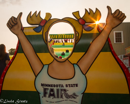 Summer’s official closing party took place this past Labor Day as the Minnesota State Fair came to its conclusion. I spent the final day of the fair with 170,000+ of my new friends enjoying the perfect weather, the food, the animals, the rides, the entertainment, and the people watching. One of the oldest rides, and in my opinion one of the simplest rides, is the Giant Slide. Climb up the stairs, sit on a mat, and slide all the way down to the bottom. No flashing lights, no blaring music, no mechanical anything; it’s simple, it’s fun, and attracts people of all ages. It’s a chance for adults to be kids again and for kids to be amazed at the adults around them having fun! This cutout was meant for someone to put their face in, but it became the perfect frame for all the fun and laughter that was going on behind it on the Giant Slide. Wheeeeeeeee!