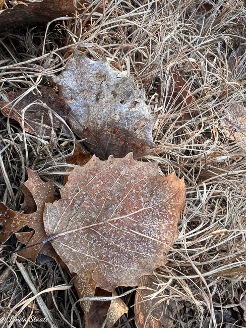 Today was a morning to pull out my warm winter coat, hat, and gloves for my daily walk. With a cold start to the dawn at 18 degrees, I was treated to tiny and intricate bits of frost decorating the fallen leaves. I marveled at our passing into yet another season, and couldn’t help but think back to warmer temperatures and a now-distant summer.
